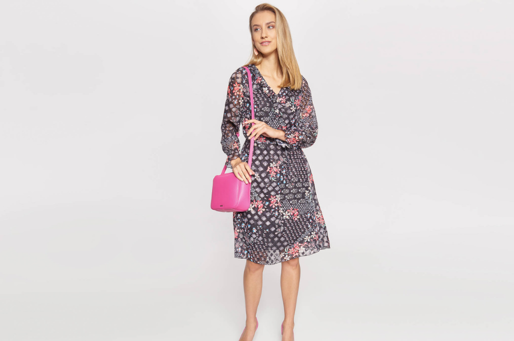 Typ sylwetki rożek może optycznie „zredukować” centymetry w linii ramion również poprzez odpowiedni fason bluzki lub górnej części sukienki. Ważnym aspektem są w tym wypadku dekolty i ich kształty. Zdecydowanie wybieraj dekolty w szpic lub w serek, które zwężają szerokość klatki piersiowej oraz ramion. Dobrze sprawdzą się również dekolty kopertowe. Sukienki o tym fasonie mają uniwersalnych krój, który pasuje niemal do każdego typu figury, dlatego zdecydowanie warto mieć je w swojej szafie.